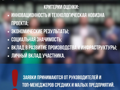 Открыт прием заявок на V юбилейную Всероссийскую премию «Молодой промышленник года»