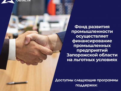Фонд развития промышленности осуществляет финансирование промышленных предприятий Запорожской области на льготных условиях