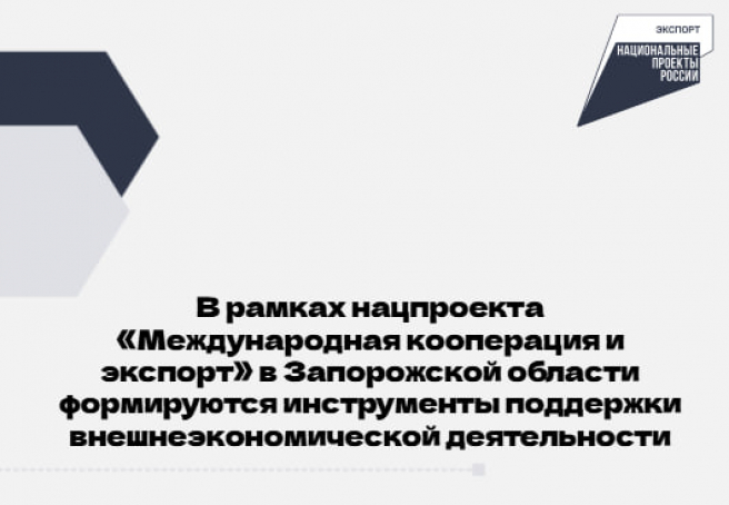 В рамках нацпроекта «Международная кооперация и экспорт» в Запорожской области формируются инструменты поддержки внешнеэкономической деятельности